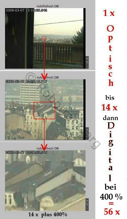 Beim digital Zoom wird das Bild zunehmend pixeliger. Bei